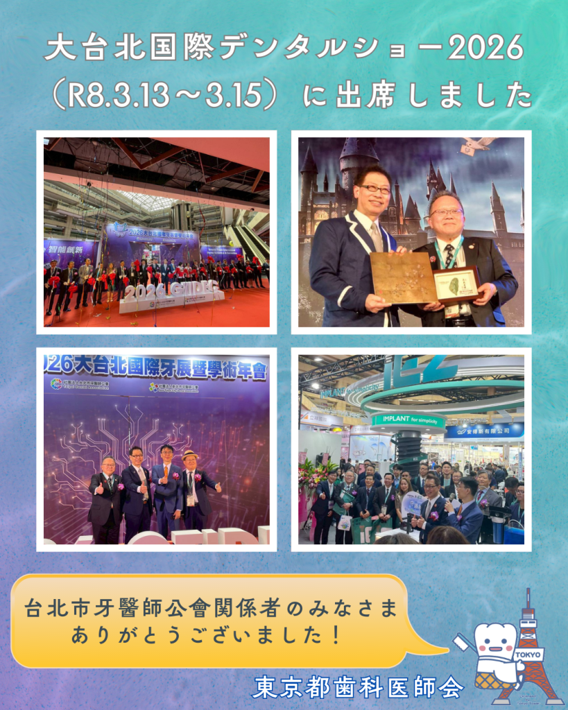 令和8年3月13日から15日まで、台北世界貿易センターにおいて開催された「大台北国際デンタルショー2026」に、東京都歯科医師会の北村晃会長が参加しました。